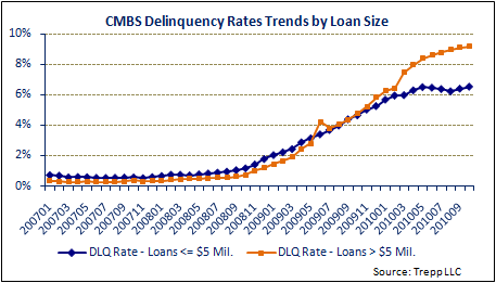 Also, now that conduit loan delinquencies appear to have peaked for the cycle, it's clear that small-balance loans are performing significantly better than their $5 million-plus counterparts - at least for the past five calendar quarters or so.